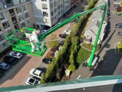 Painting Mansard Roof on Exterior of Condominium Complex in Stamford, CT - Alpine Painting