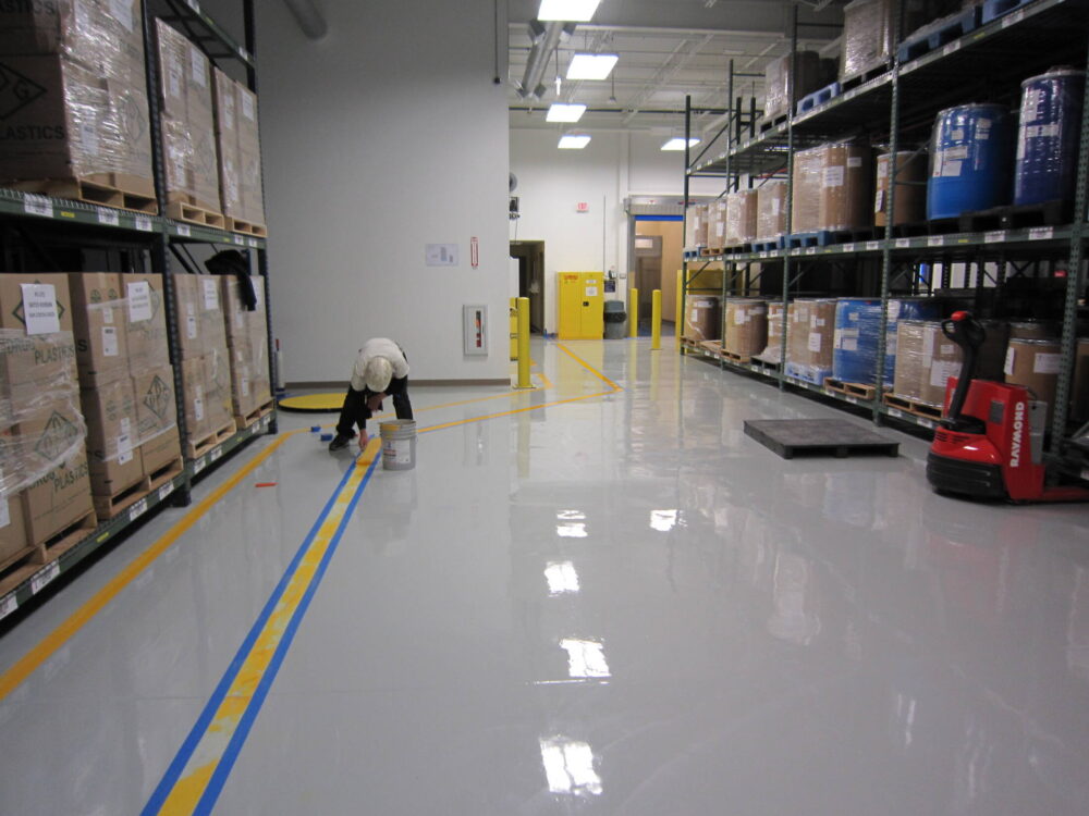 Industrial Line Stripping Egress Walkways in Warehouse in Cranbury, NJ - Alpine Painting